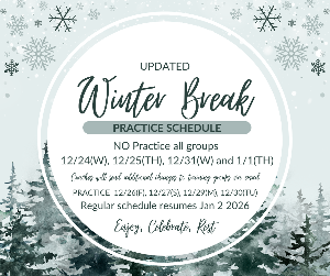 All of our families and coaches deserve a break! Here is the practice schedule that effects the entire team (Specific dates to be sent...